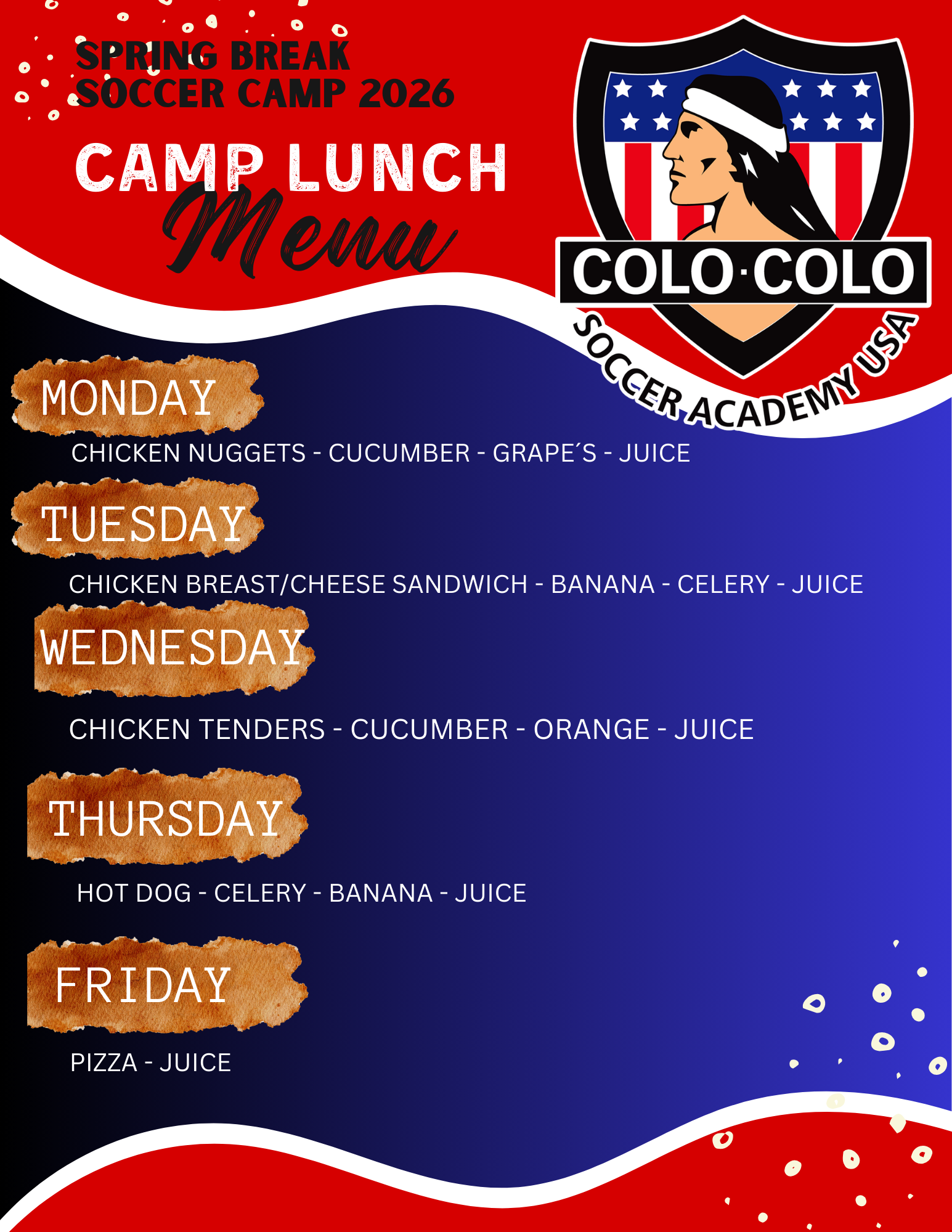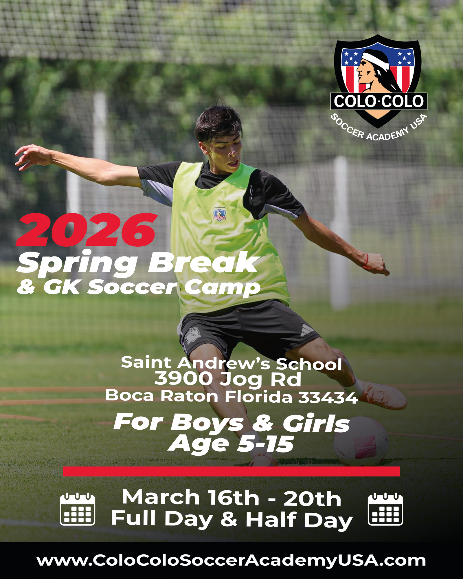 Train like a champion this 2026 Spring Break at the Colo Colo Soccer Academy USA Soccer & Goalkeeper Camp. Our program is designed to be fun, engaging, and developmentally focused to help players of all levels take their game to the next level.